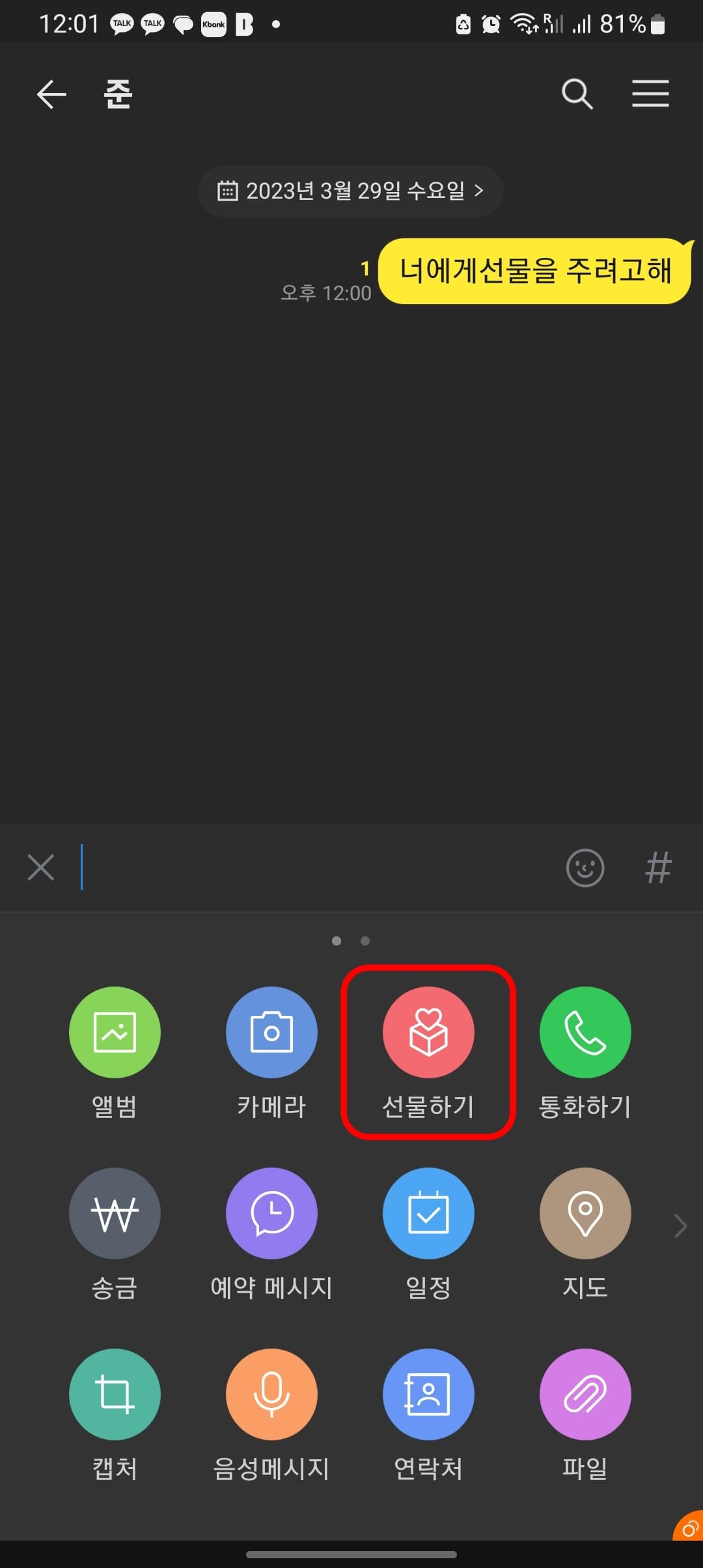 채팅방에서 선물하기
