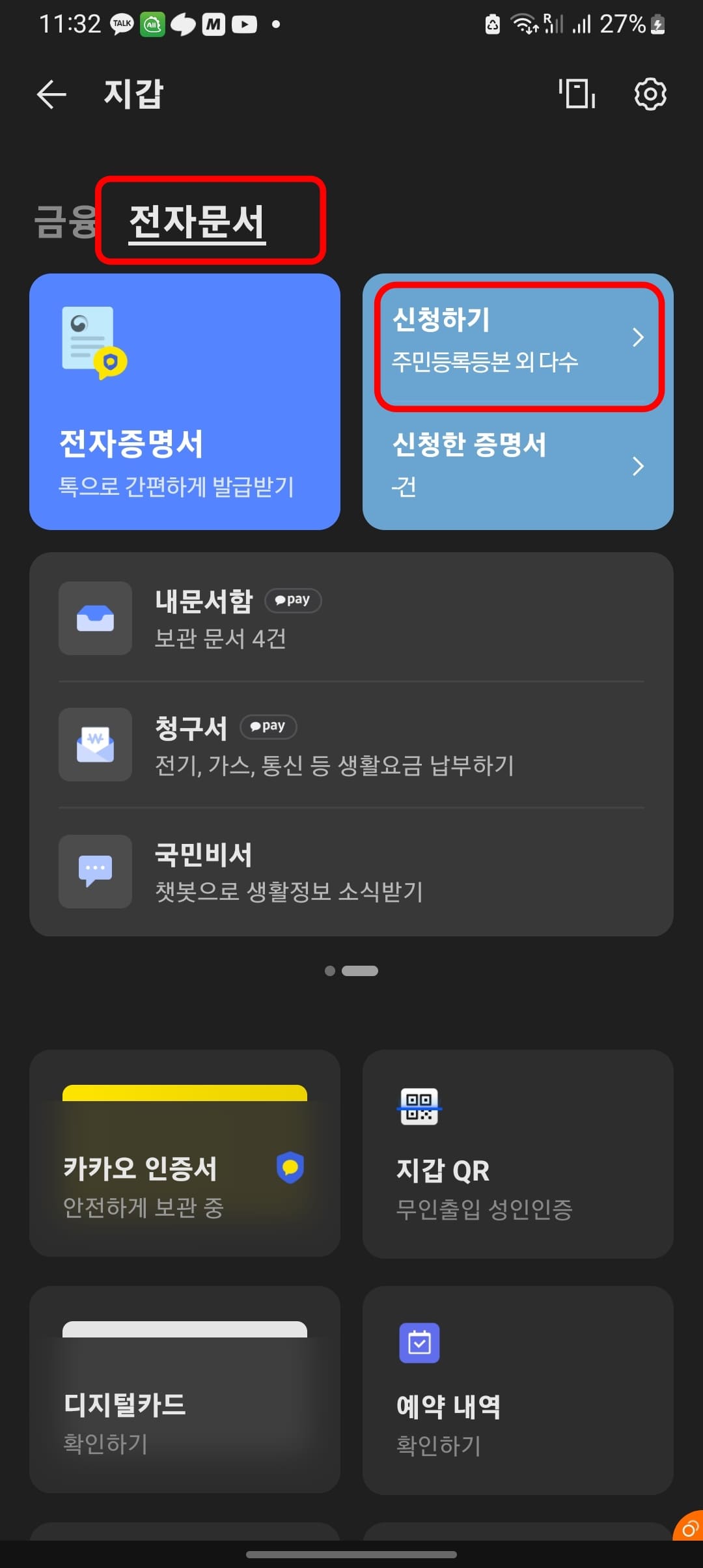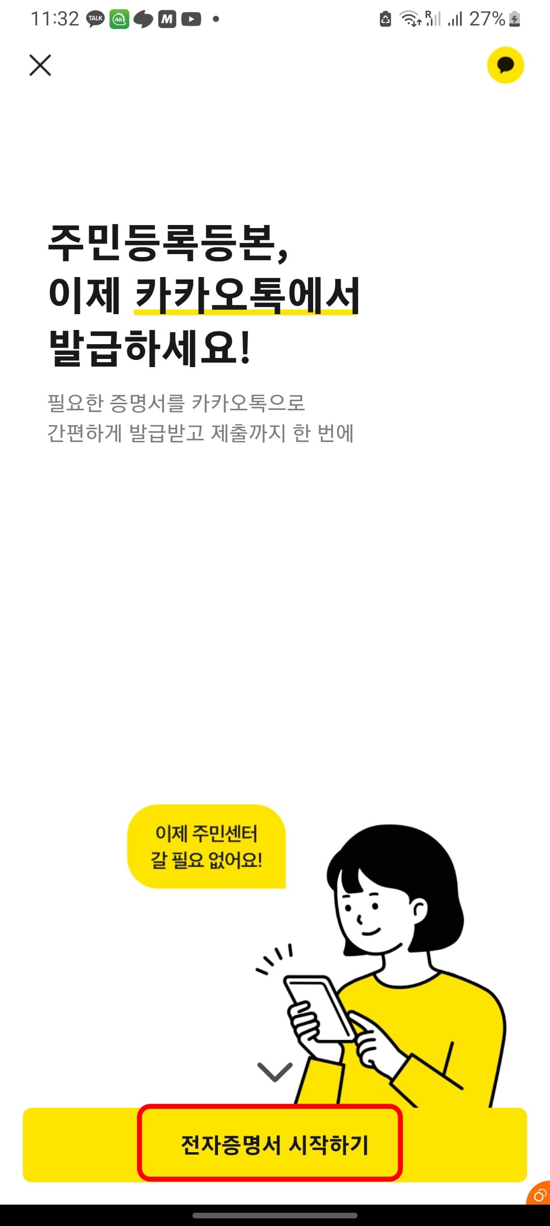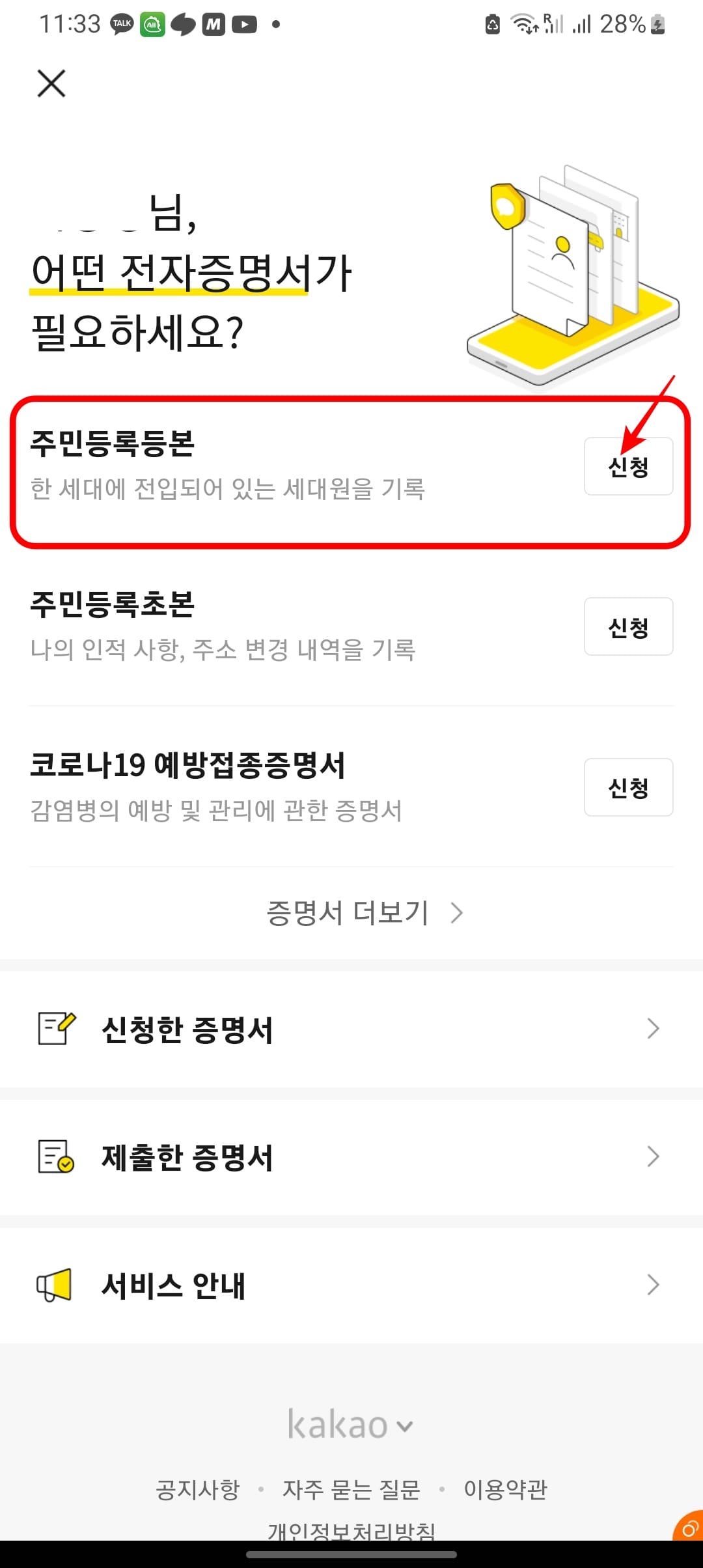 카카오톡 주민등록등본 발급 방법